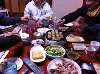 呑まず喰わずで参戦。夜、みんなで鍋も見てるだけで