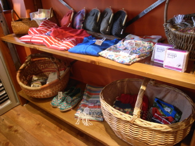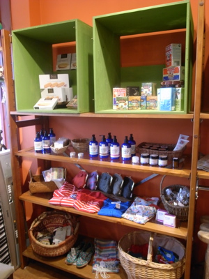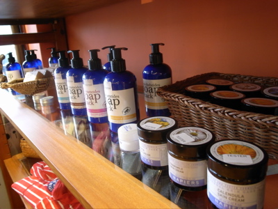 オーガニックの紅茶、お菓子、スキンクリーム、石けんなどがいっぱいです。