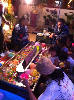 スーパーボールすくいも流れる入れ物を作った方にお借りして、