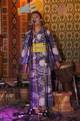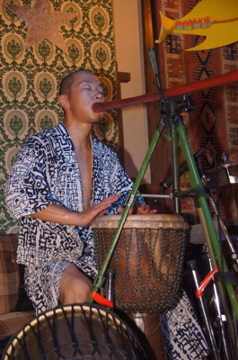 ブラジル人バンドと演奏しながら、