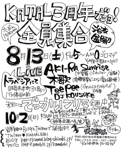 8/13(土)KAMAL3周年だョ!全員集合!!