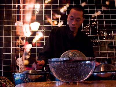 各種金属類、ホーミー、叩きもの全般、多種多様な楽器を使い即興演奏をする。