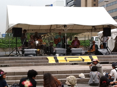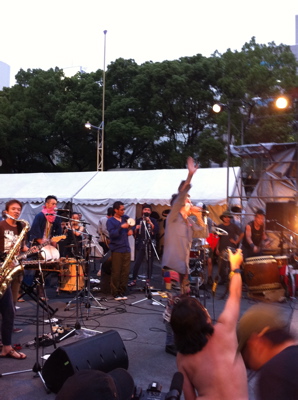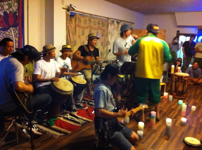 遅くまで室内でライブで盛り上がってました。