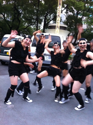 金をくれ〜!!と募金活動する、ナマズダンサー達