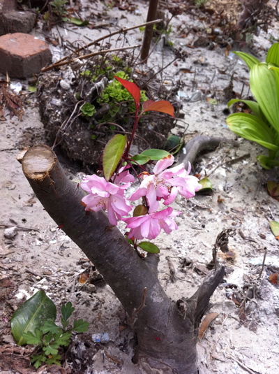 そんな庭にひめりんごの木が花を咲かせてて、