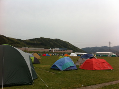 大学へ着くと、自分たちのベースキャンプを設置し、