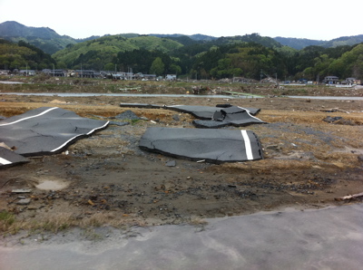 仮設住宅や瓦礫の集積所が目立つようになってくる。