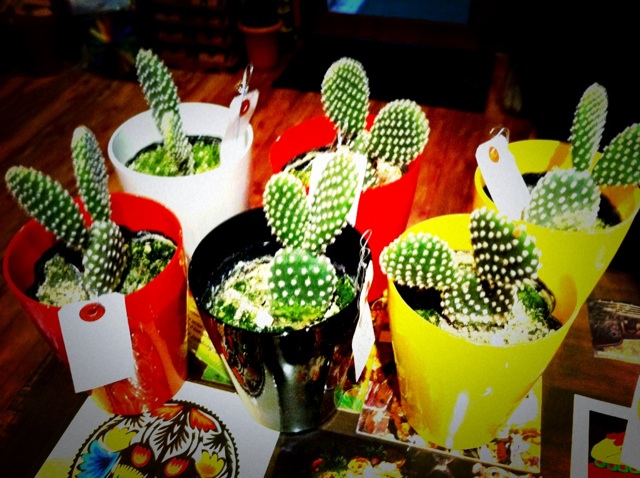 ミッキーマウスのようなカラフルな鉢に入ってます