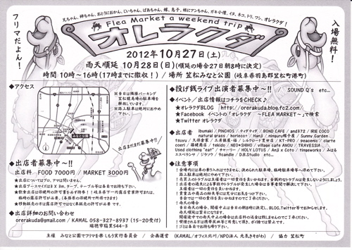いよいよ土曜日はオレラクダFLEA MARKET@岐阜笠松みなと公園