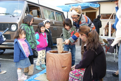 お一人様500円、つきたてのお餅に豚汁などなど。