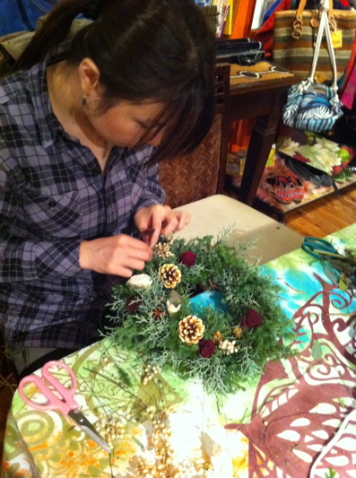 先日、リースワークをやってくれたpuharaさんのお店へ