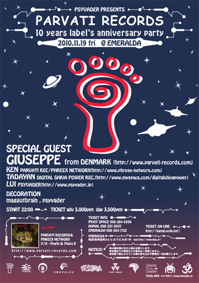 今週金曜日に岐阜emeraldaにて、parvati rec10周年記念partyがあります。