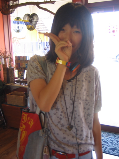 彼女もまた、夏休みの宿題でお店のリサーチをしているようです。