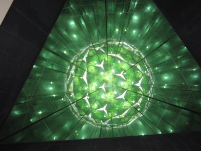 ハンドルを回して塔の下から上を見るとおっきな万華鏡がみれました。
