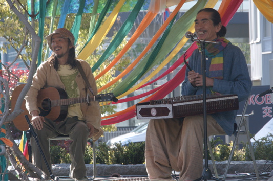 多種多様な新古の楽器を織り交ぜ独自のスタイルで演奏する。