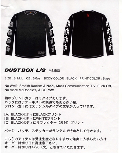 CATANAの新作!!DUST BOX L/S
