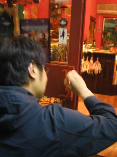 お店の入口取っ手?に絵を描いてもらいました。