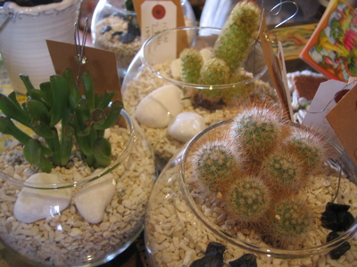 涼しげなガラスの器にサボテン。