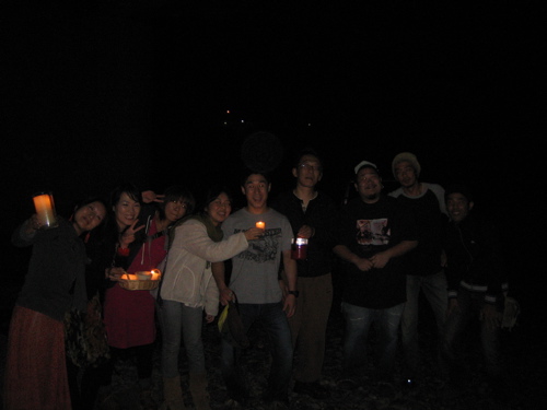 ケーキにろうそくをつけ、隠れていた私たちは