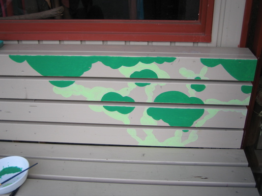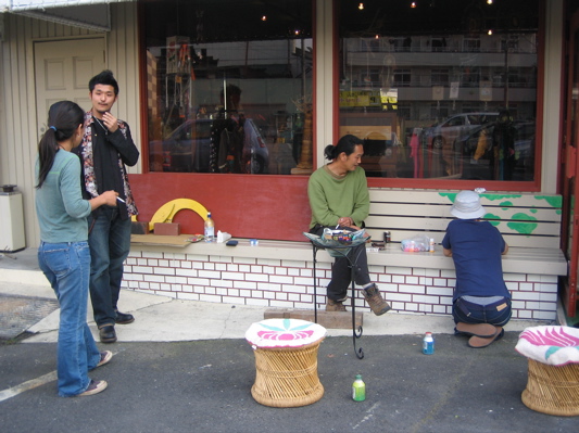 ナカジーはベンチに絵を描きだしました。