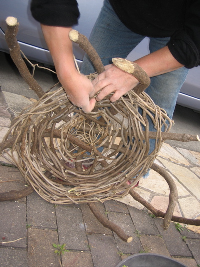 帰って、母はカゴを編む