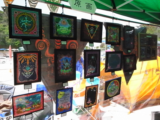 ブース内には友達のyunicoのバティック、ポスター、ウエアー