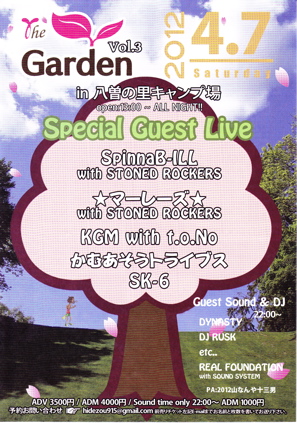 4/7(土)Garden @八曽の里キャンプ場